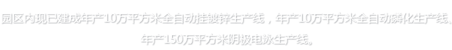 特點: PLC全自動控制,故障自動解析報警,過程參數(shù)自動顯示及記錄,全自動安全防護,在線自動吹水/烘干。鹽霧能力、附著力、耐沖擊、耐彎曲性等性能國內(nèi)領先。 產(chǎn)能: 10萬平方米/年
